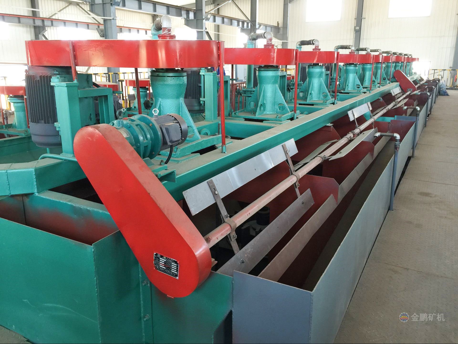 銅鉛混浮采用一粗三掃四精的浮選工藝流程,粗掃選采用充氣式浮選機,精選采用自吸式浮選機。