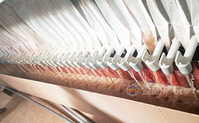 浸出槽尾礦經(jīng)緩沖槽由泵輸送到全自動廂式壓濾機(jī),壓濾后的水流入循環(huán)水池以備循環(huán)利用,濾餅經(jīng)帶運(yùn)輸機(jī)運(yùn)到尾礦堆場,卡車將尾礦運(yùn)到尾礦庫。