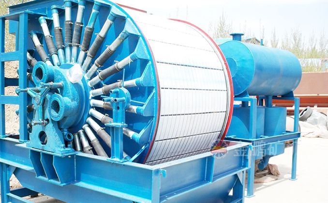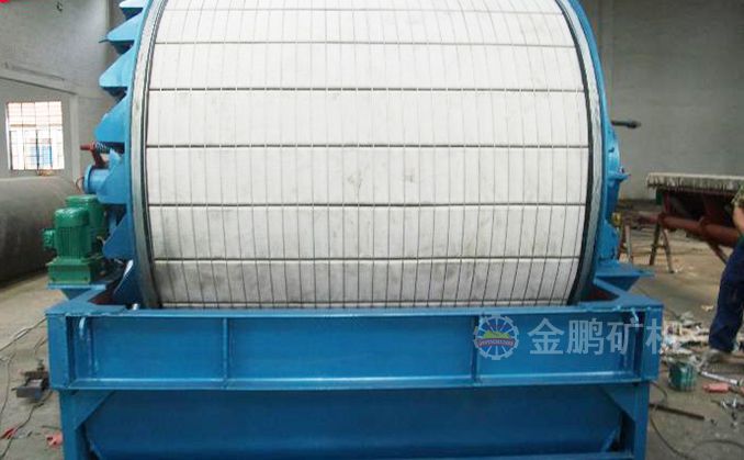 磁濾機的給料槽在上部,由于上部給料,濾餅又在磁場中形成,所以濾餅中精礦按粒度分層現(xiàn)象明顯,并呈放射狀分布。濾餅不但厚而且透氣性好,易于脫水。