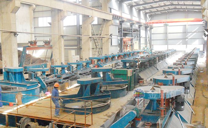 四、礦漿經加藥攪拌后給至浮選機進行浮選作業。浮選機由槽體、充氣、攪拌系統組成,在浮選槽中,受到捕收劑作用的礦物顆粒被吸附在氣泡表面并形成礦化泡沫層,用刮板刮出,即得到泡沫產品。